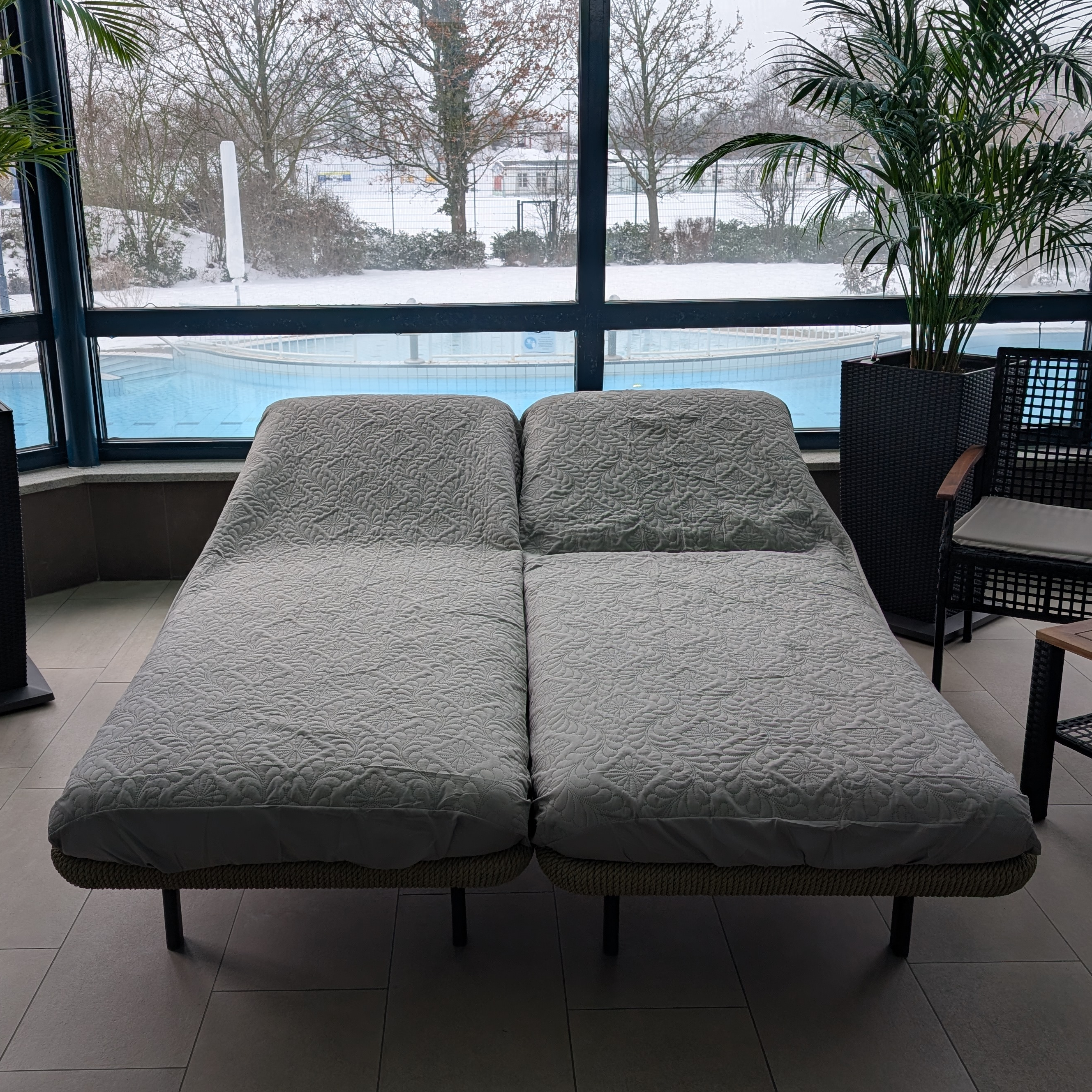 Die Bereitstellung der Liegen erfolgt nach Verfügbarkeit. Ein Anspruch auf ein bestimmtes Modell oder eine spezifische Ausführung besteht nicht.